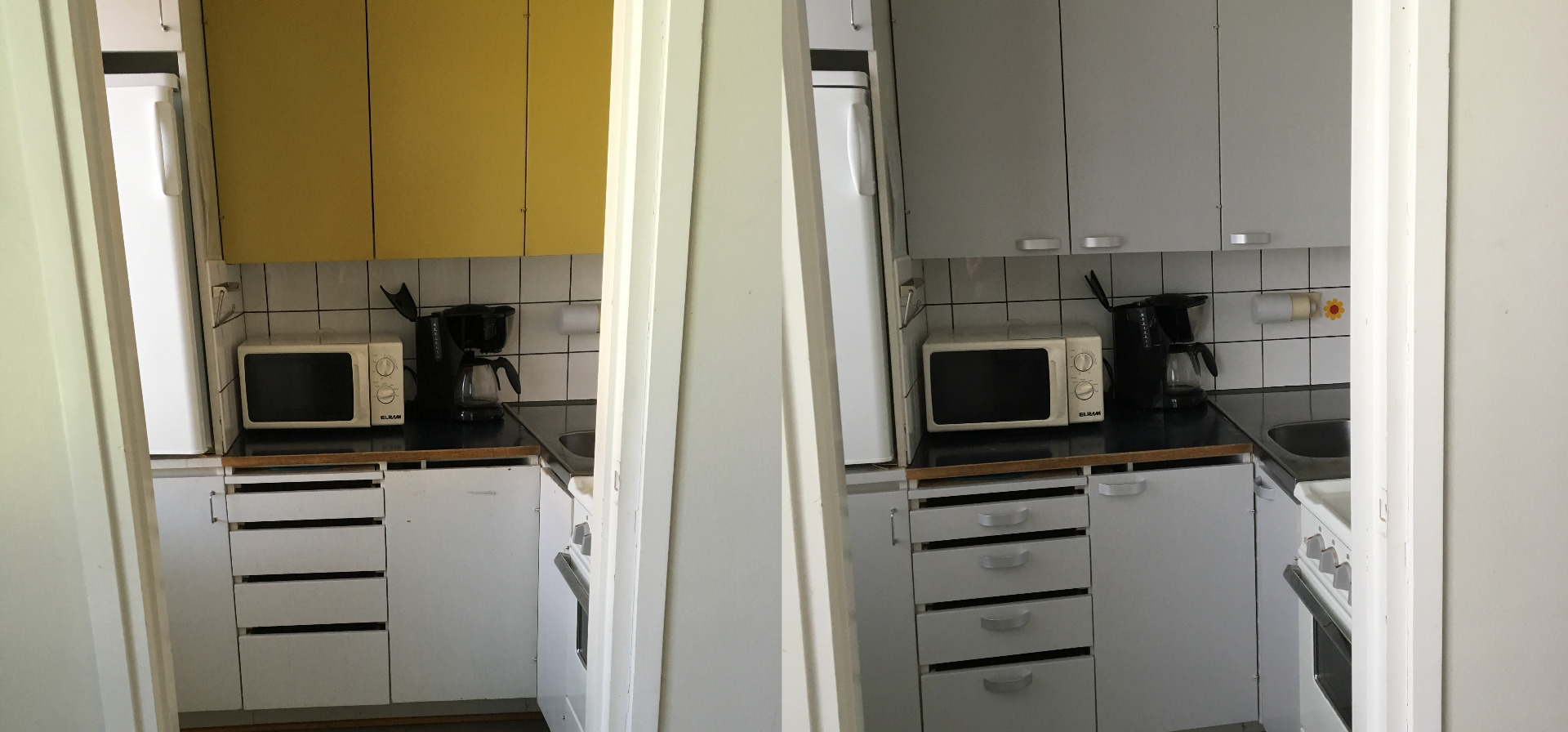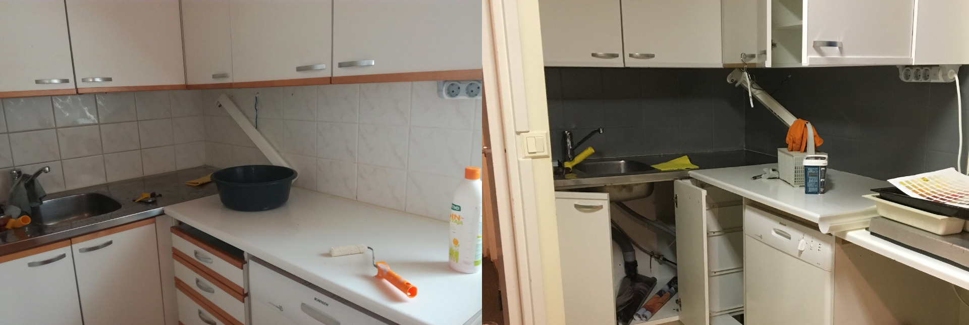 Kaappien maalaus ja vetimien vaihto, vain muutamassa tunnissa tehty muutos.