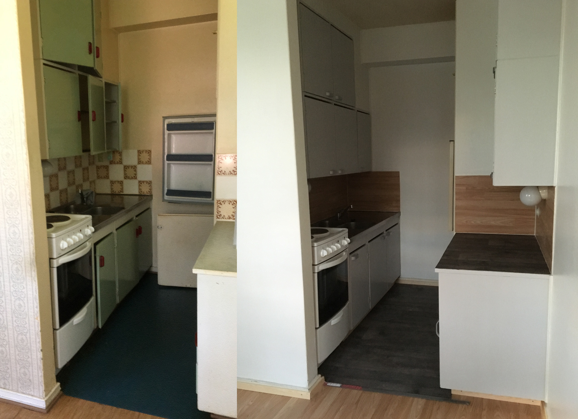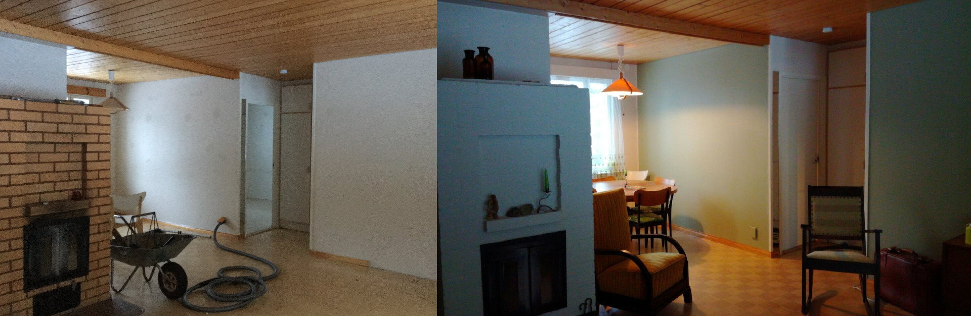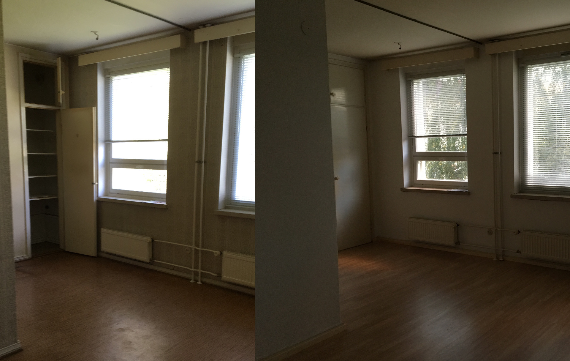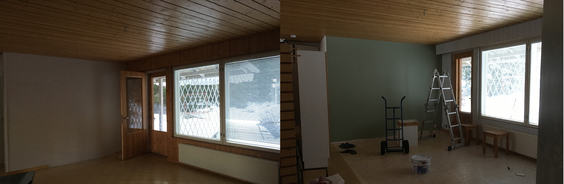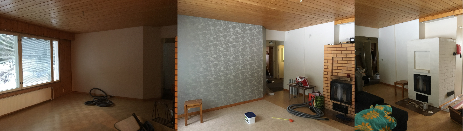 Tapettien päälle maalaus ja uusi laminaattilattia.